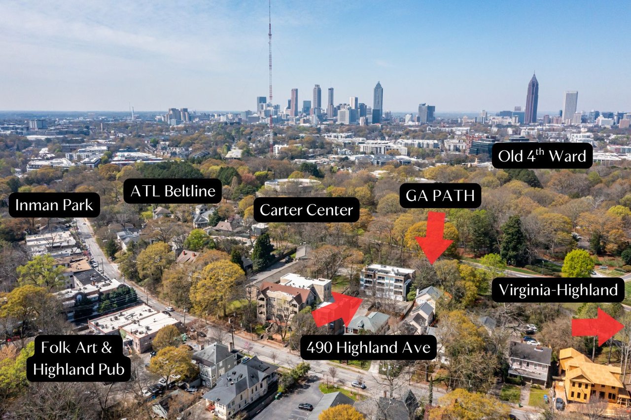 Beyond the front door, the lifestyle is just as compelling. Publix and the Freedom Farmers Market at The Carter Center are moments away for everyday convenience. Dining options are exceptional—just across the street enjoy Wisteria, Amore e Amore, Folk Art, and North Highland Pub. Inman Park Village offers Barcelona Wine Bar, bartaco, Delbar, BeetleCat, Sotto Sotto, Fritti, Bread & Butterfly, Little Spirit, and Bomb Biscuit Co., while along North Highland and nearby you’ll find Manuel’s Tavern, Tio Lucho’s, Fishmonger, Sweet Auburn Barbecue, and Madeira Park.